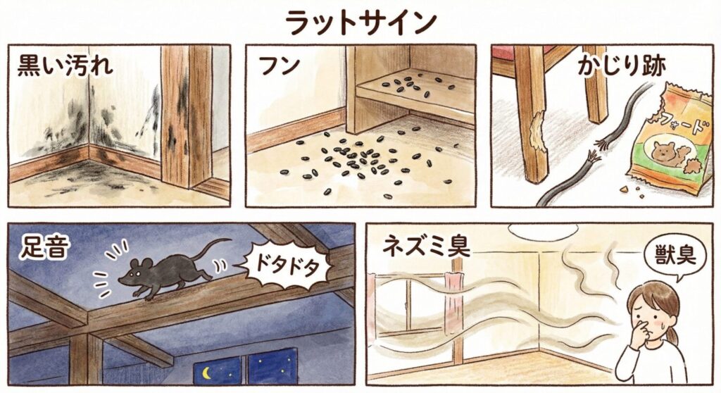 - 家の複数箇所でラットサインが見つかる